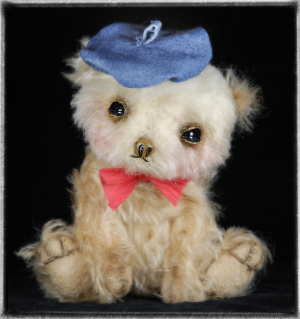 'Sir Franco DeCuteness' is a 9" (22.8 centimeters) hand sewn La De Da' Artisan Bear. FACIAL FEATURES 'Sir Franco DeCuteness' views the world through black premium glass eyes. He has our signature sculpted lids filled with "wet" tears. His nose has also been sculpted freehand. His cheeks are rouged adding to his la de da' appeal. BODY He is five way jointed and is created in a fluffy mohair stained in a light tea and cream. He was sewn entirely by hand, (no machine sewing) and is stuffed with poly, copper shot and the highest quality lavender buds in the chubby belly. His arms and legs have been weighted with shot for an even more substantial weight. He can not stand on his own but can be propped. Most of his torso is filled with French Lavender. LAVENDER The lavender is imported from the Mont Ventoux region of Provence, France. Lavender is a La De Da' signature element added to all of my bears to enhance the "hug" experience with a gentle, therapeutic natural scent. Squeezing the buds helps release the scent, so you get a little bit of relaxation with every hug. In addition, non-culinary Lavender is a natural repellent helping preserve and protect your La De Da' Artisan Bear for many years. DETAILS 'Sir Franco DeCuteness' wears a soft denim beret on his head and a shabby red bow tie. His foot pads have been detailed with cute pudgy "toes". All of my designs are one of kind, no two bears are alike. From my heart to your hand....I hope the La De Da' Artisan Bears bring you a smile. May God bless you always.