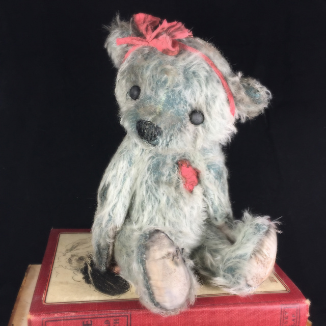 'Sweet Nellie' views the world through premium black glass eyes that have been aged to look like antique bear eyes. The nose is stitched in a loose fashion.